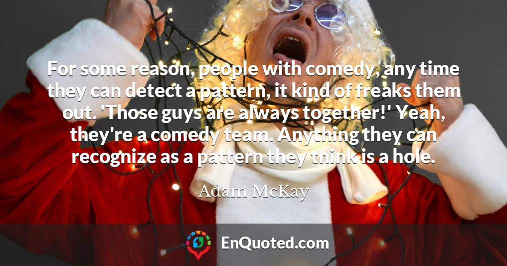 For some reason, people with comedy, any time they can detect a pattern, it kind of freaks them out. 'Those guys are always together!' Yeah, they're a comedy team. Anything they can recognize as a pattern they think is a hole.