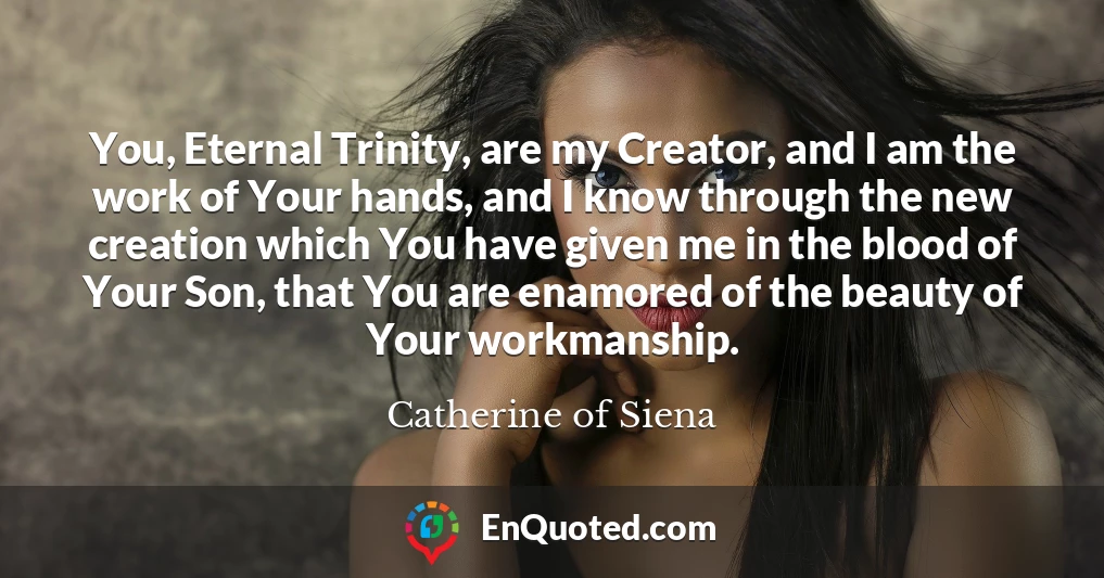 You, Eternal Trinity, are my Creator, and I am the work of Your hands, and I know through the new creation which You have given me in the blood of Your Son, that You are enamored of the beauty of Your workmanship.